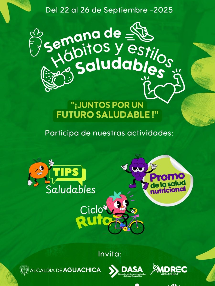 El Departamento Administrativo de Salud – DASA, el HLA Hospital Local de Aguachica E.S.E., el PIC 2025, el IMDREC, en articulación con el SENA y el Bienestar Familiar, te invitan a la gran