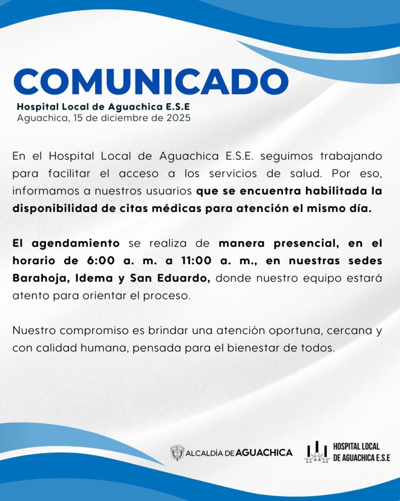 Agendamiento de citas de manera presencial de lunes a Viernes en el horario de 6:00 a.m a 11:00 a.m en la sedes Barahoja, idema y San Eduardo.